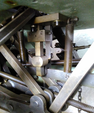 纵向去毛机构采用槽形凸轮确保刀架进退可靠,动作配合协调,刀片上下左右调节灵活方便,左右去毛光洁对称,满足不同大小规格链条生产。